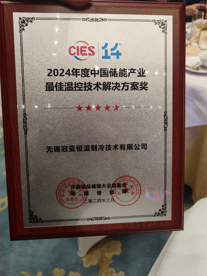 3月10日舉行的“儲(chǔ)能之夜”暨2024年度中國(guó)儲(chǔ)能產(chǎn)業(yè)具影響力系列獎(jiǎng)項(xiàng)頒獎(jiǎng)盛典上,冠亞制冷榮獲“2024年度中國(guó)儲(chǔ)能產(chǎn)業(yè)zui佳溫控技術(shù)解決方案獎(jiǎng)”。此次獲獎(jiǎng),是行業(yè)、市場(chǎng)及廣大客戶(hù)對(duì)冠亞制冷品牌影響力和產(chǎn)品硬實(shí)力的信任,也是對(duì)冠亞制冷深耕儲(chǔ)能技術(shù)創(chuàng)新發(fā)展的高度認(rèn)可。