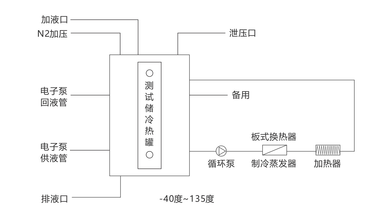 設(shè)備應(yīng)用:實(shí)現(xiàn)為汽車電子泵提供高溫、低溫測(cè)試用防凍液系統(tǒng), 也可做冷熱沖擊測(cè)試用系統(tǒng);